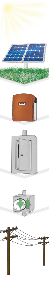 - The energy is first used onsite by any electrical loads connected, such as lighting, computers, air conditioning, machinery, etc. Any excess energy flows outward through the meter, effectively turning your meter backward.