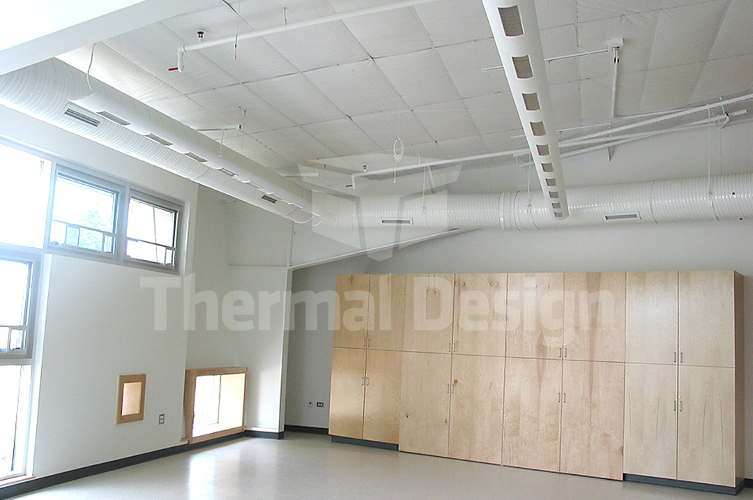 Metal buildings have become much more than your typical warehouse and have now also become a popular choice used for schools, offices, and studios. So why insulate them like a cold warehouse? The all in one finishing and insulating Simple Saver System provides a similar grid work roof pattern as acoustical ceiling tiles but at a fraction of the cost.
