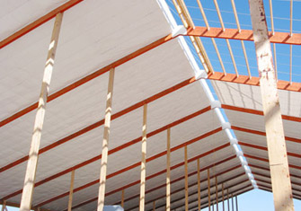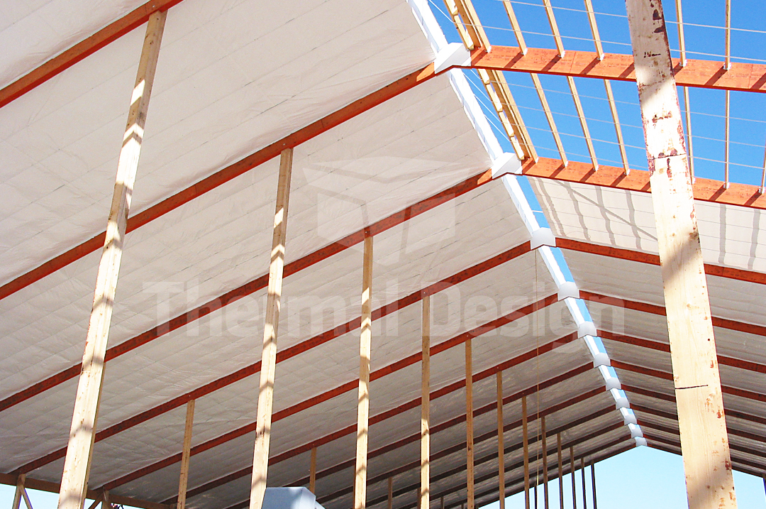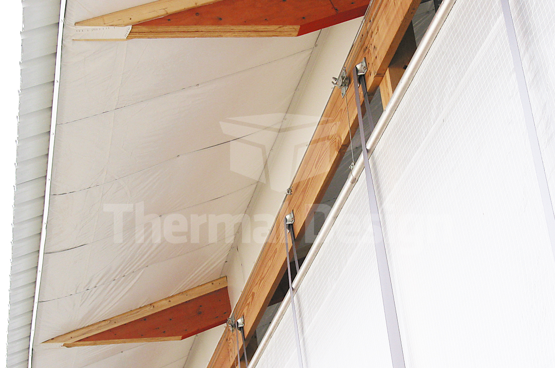 The durable fabric of our liner system can either be installed on the bottom cord of the wood trusses or within the frame of the trusses, on the underside of the wood purlins; both options deliver high uncompressed insulation R-values. The Simple Saver System is an inexpensive finishing and insulating solution that is easy maintain. Ideal for agricultural, machinery storage and workshop applications.